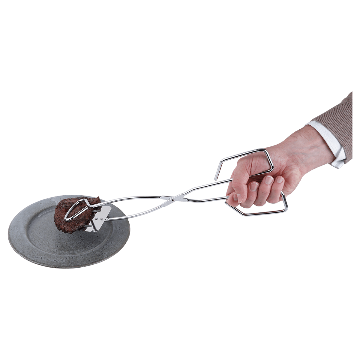 Kombinationen mellem tang og spartel er et uundværligt grillredskab hvor spartlen kan glide ind under maden,