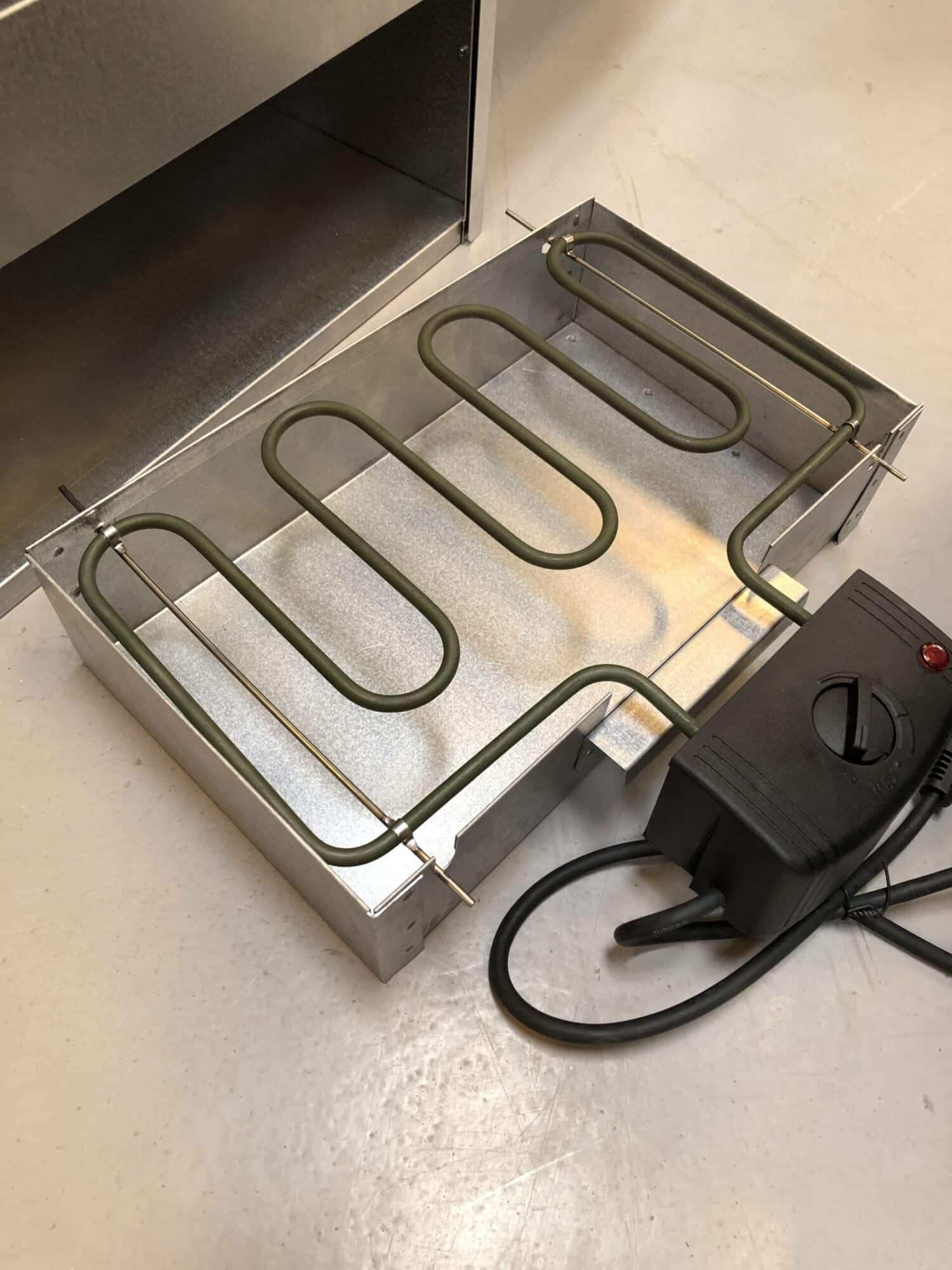 Til varmrøgning kan du bruge småbrænde eller du kan tilkøbe et elvarmelegeme.
