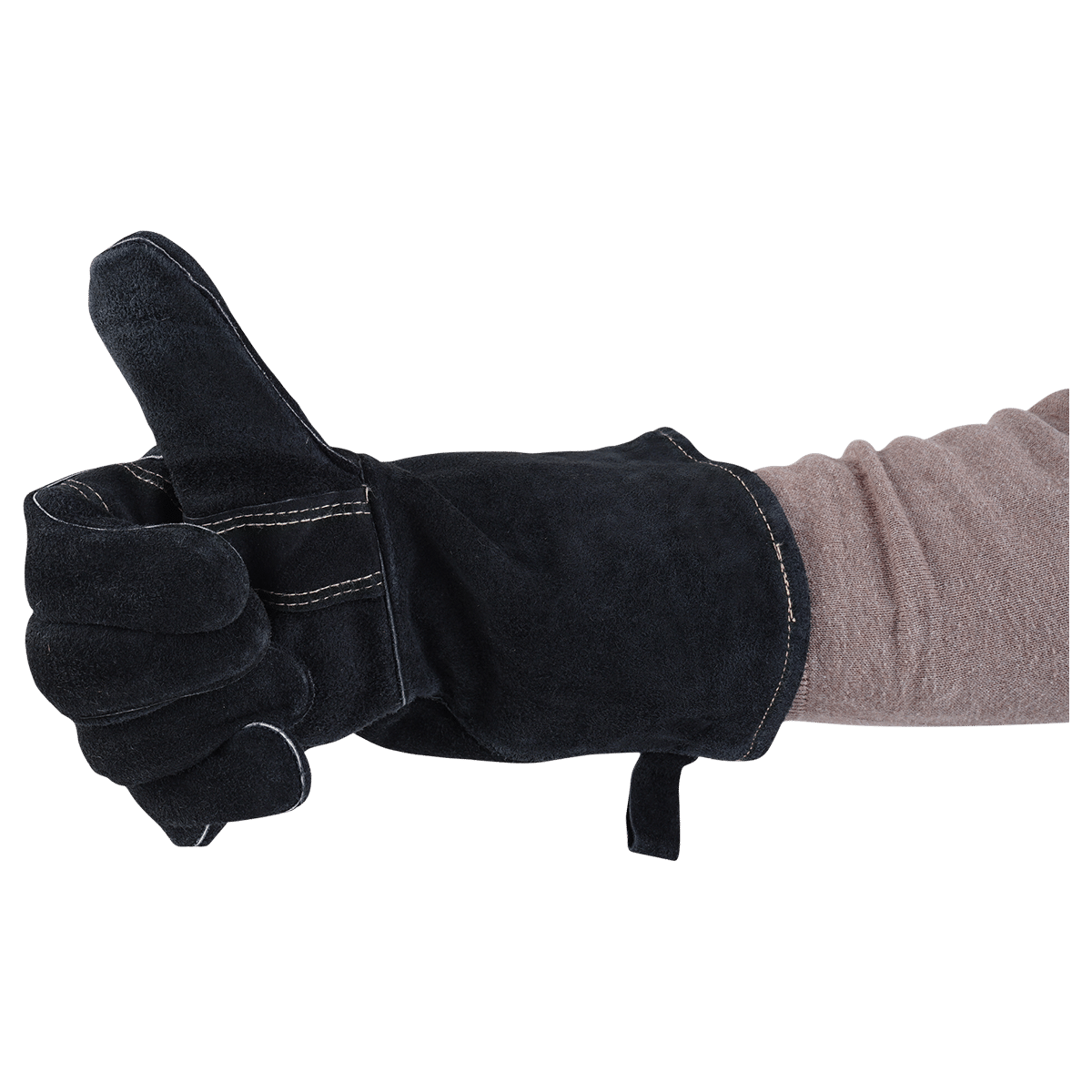 Bålhandsker i kraftig okseskind Specielt udviklet til at yde god beskyttelse mod høj varme.
